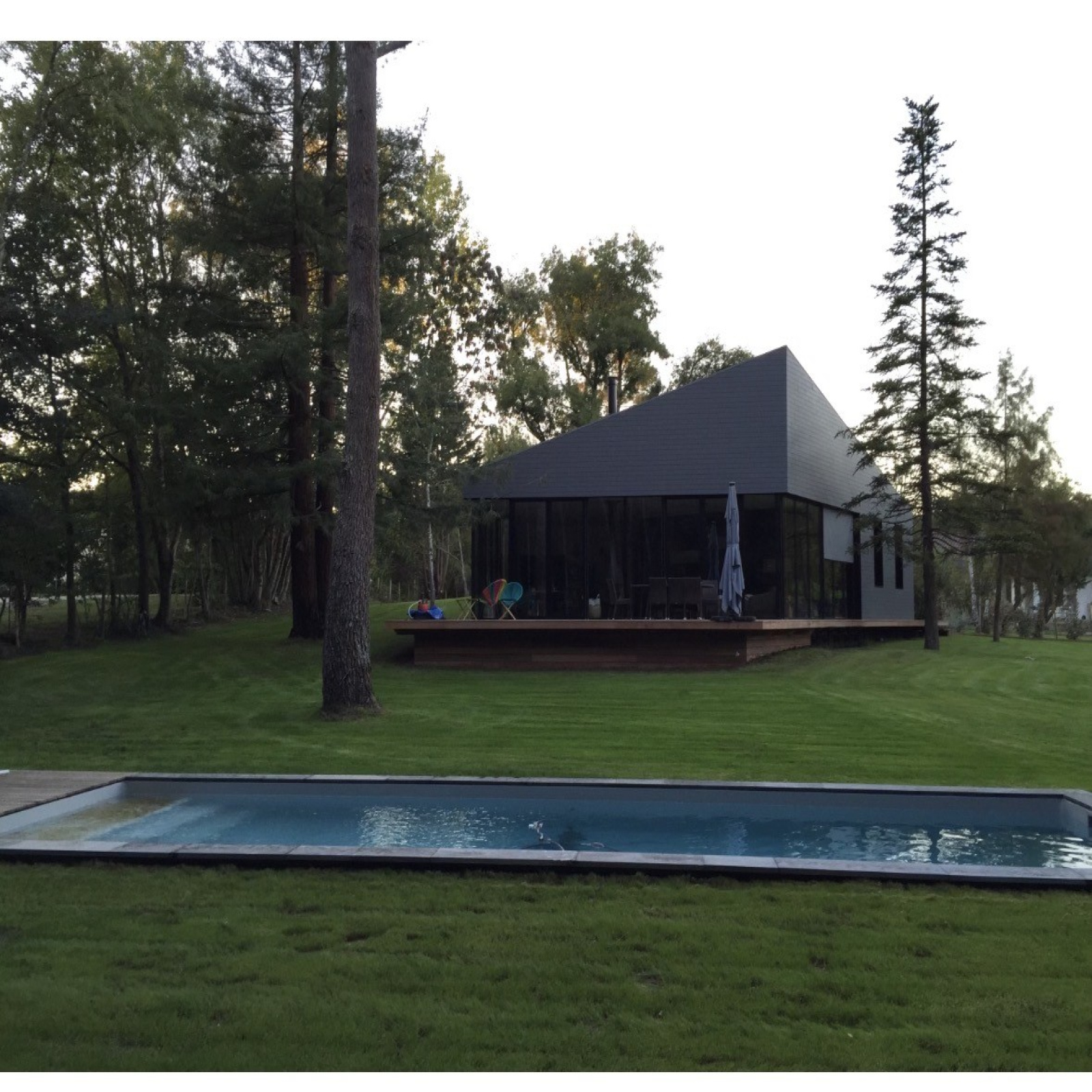 Séjour double avec cuisine US donnant sur belle terrasse avec piscine, 4 chambres, deux salles de douches, 2 wc,
